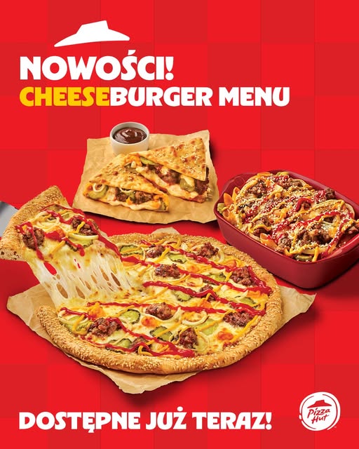 Starówka Aktualności Soczyste Cheeseburger Menu wjechało do Pizza Hut! 27/08/2025 Soczyste Cheeseburger Menu wjechało do Pizza Hut! Pizza, Zapiekaron i Meltsy w połączeniu z cheeseburgerem -chrupiące na brzegach, soczyste w środku ? Dostępne w restauracjach, na wynos i w dostawie.?